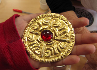 New items, the Finglesham Brooch and a Kentish gold brooch, made at Tithe Barn Primary, Stockport, April 2016: