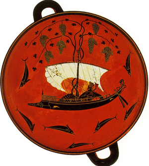 to Athens In the middle of the 6th century BC (550ish) a town near Athens, Eleutherae, became part of the Athenian empire. They had a cult of the god Dionysos (the god of wine and joy), and the cult was moved to Athens. The wooden statue of Dionysos was brought in a holy procession to a small temple just to the south of the Acropolis. The remains of this temple are to the right of the picture shown here.