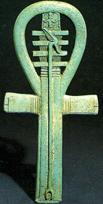 Right: an ankh (=life), together with a djed (=stability) and a was (=prosperity or dominion)