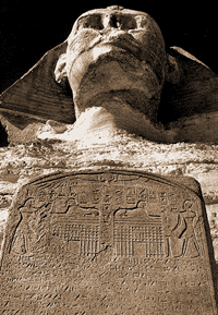 There is a famous story about the pharaoh Thutmose IV. One day he was tired from hunting and went to sleep on the sand near the Great Sphinx, which lay partly buried in the sand. In his dream the Sphinx told him that if he cleared away the sand, he would become pharaoh. As he indeed did, although it's hardly surprising as he was Thutmose III's grandson. He recorded his dream on a stela (a block of stone) and placed it between the paws of the Sphinx - which is where it is still today (see right).