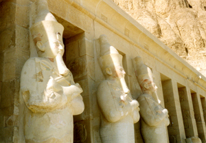 Right: statues of Hatshepsut at her temple; most have been destroyed