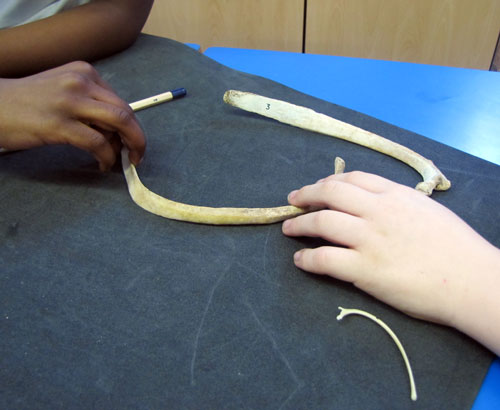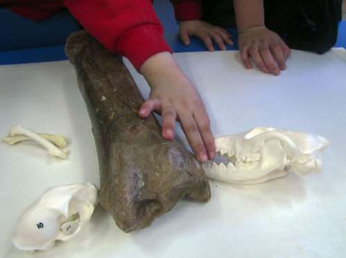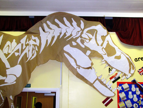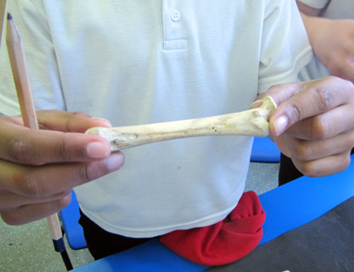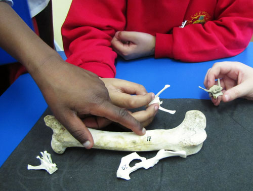 Pictures from Fossils and Bones workshops - making the T rex at All Saints CE Primary, Farnsworth, Bolton, year 4, on Thursday 9th February 2012 The Bolton News visited after the workshop - see the article here Name the Bone Game - children handle real animal bones and work out what type of bone they are and which animal they come from |