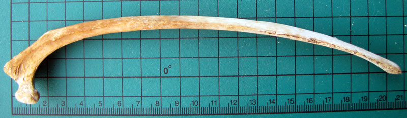 Rib of ice age bison. Bos species, from ice age, 30,000 years old. Found at Yarmouth, IOW. |
