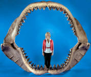 Megalodon. Left: the jaws of an enormous Megalodon. |