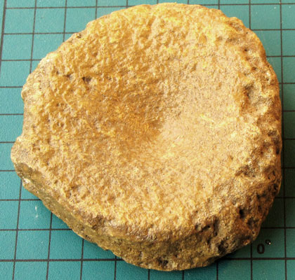 11. Ichthyosaur vertebra: from Whitby, Yorkshire, about 190 million years old (Jurassic). Ichthyosaurs were sea reptiles resembling dolphins. |