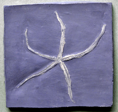 Fossil painting by Year 3 at Tithe Barn Primary School, Stockport, September 2016