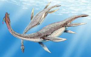 Deinonychus, Plesiosaurus & Pteranodon (and fossil painting)