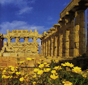headband or hat. Jealous Hera Because her husband had many love affairs Hera was very jealous and often punished Zeus' lovers or his children. Heracles was the one she was most annoyed about. When he was a baby Hera sent snakes to kill him - but he was so strong he strangled them. Later she invented the famous Twelve Labours, but Heracles was successful in all of them. Worship of Hera Hera was widely worshipped as the goddess of women and marriage. She had several temples, including the one shown right at Selinus, in Sicily. |