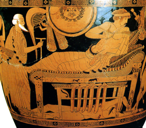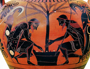 picture left shows him playing dice with his friend, Aias (Ajax).