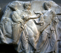 The Parthenon sculptures in the British Museum in London are also called the Elgin Marbles. This is because in 1806 Lord Elgin brought them to Britain from Athens. The Turks ruled Greece then and they sold them to him. Now the Greek government wants Britain to give them back. They have even built a new museum for them within sight of the Acropolis. There is an international campaign to get the Elgin Marbles returned to Greece. But the British government refuses, saying that if they did this, every museum would have to start giving back their ancient treasures to to the countries they got them from. What do you think? For more about this debate, go here.