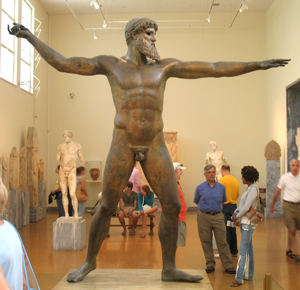Poseidon was often shown steering a chariot drawn by dolphins. His palace