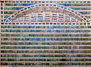 with curved blue tiles, representing the reed mats in the palace, as well as