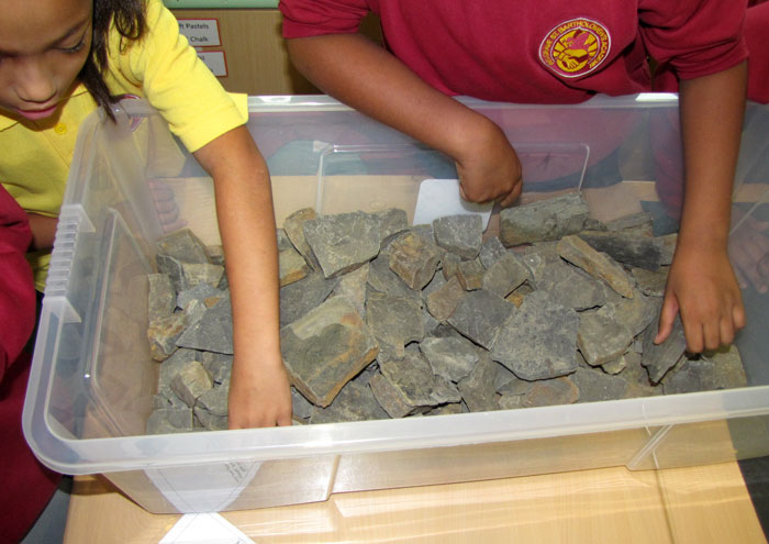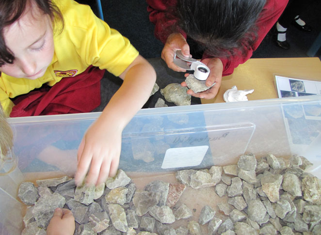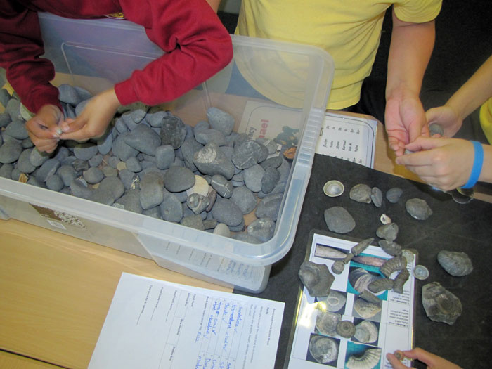 Fossil Hunt - children have to pick out fossils from a box
