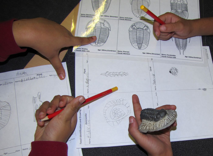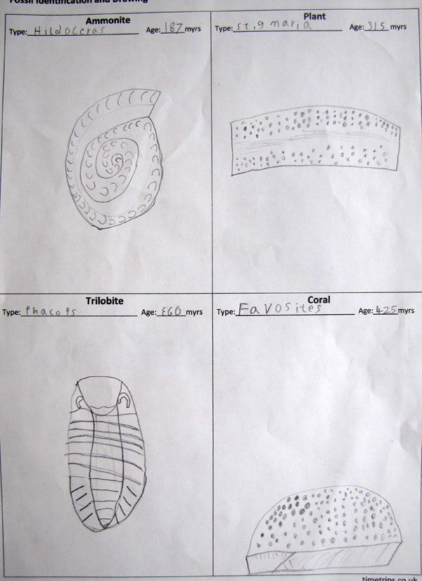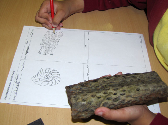 Fossil ID and Drawing - children have to identify a fossil of a