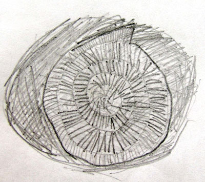 Drawing a stigmaria (fossil tree root)