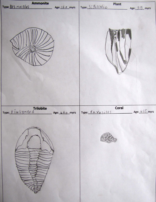 Fossil Drawings by Year 3 at