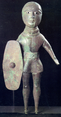 Celtic bronze statue of a French warrior (a Gaul) with shield |