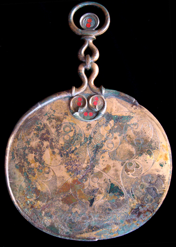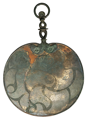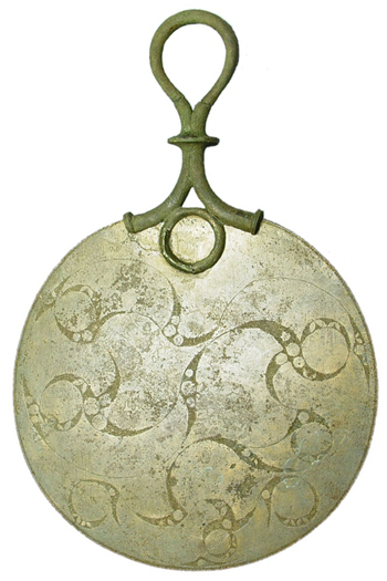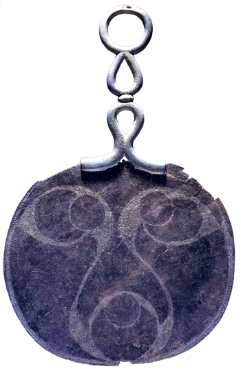 Celtic Mirrors One of the most beautiful items of Celtic treasure are mirrors. These were owned by well-off ladies and were made of bronze. One side was polished brightly for the lady to see herself. The back and handle were usually decorated, with engraved lines and shapes. Often spaces between lines were filled with 'hatching' - little marks cut into the bronze, to make an area 'darker', so the overall pattern stands out better. It is these decorations that make many Celtic mirrors great works of art. Look at the examples of some mirrors found in Britain on this page. Some people think they can see pictures within the curls and swirls - leaves, faces, birds, and other animals. What can you see? Mirrors usually had a loop on the bottom of the handle, so they could be hung on the wall. This means often you would see the back of the mirror upside down, and some experts think you should try to see the images this way round. Experts also say that the mirror patterns were always based on three sections - three lobes, or roughly circular areas, linked together. The Celts of Britain produced some amazing mirrors, which are not equalled by anything in Europe. Over time the patterns grew more and more elaborate. Which is your favourite? |