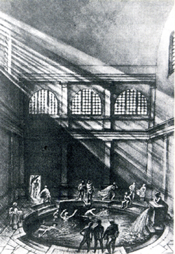 Drawing of the circular bath at Bath, a frigidarium. You wouldn't catch me in one of those. |