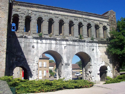 Reconstruction of the gateway at Colchester. Carts went through the bigger entrances, and walkers through the smaller side gates.